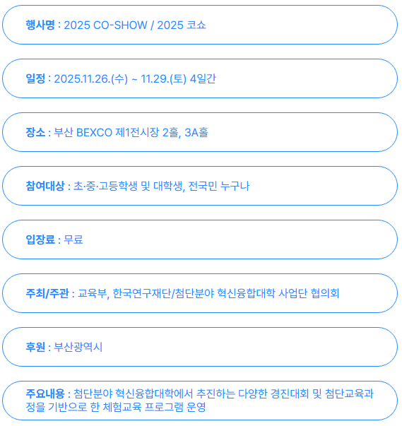 * 2025 CO-SHOW 홈페이지 : 첨단분야 혁신융합대학사업 공식홈페이지 : COSS